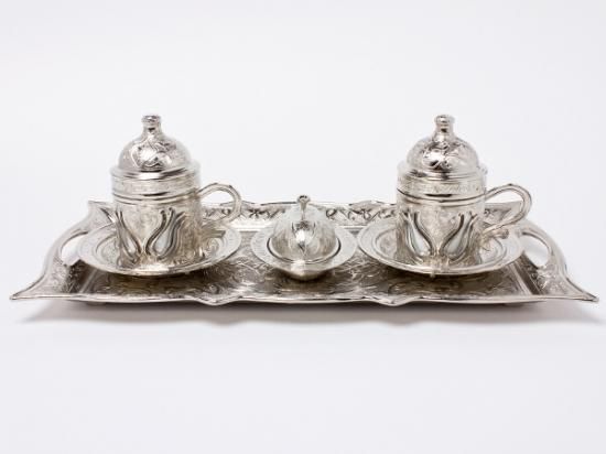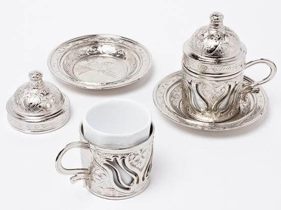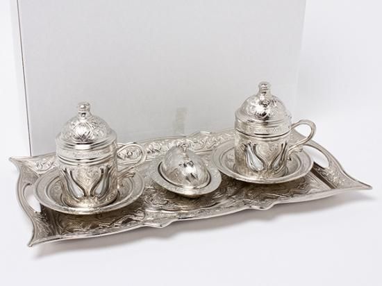 トルココーヒーカップ・シュガーポットセット 2客 シルバー toruko-02/お茶のふじい・藤井茶舗