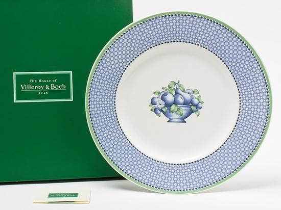 フランソワ・ボッホにより、マイセンに遅れること39年後の1748年に、現在のフランス・ロレーヌ地方に創業しました。 その後、ルクセンブルクにも工場を設立し、ハプスブルク家の援助を受け、王室御用達の窯として発展します。 1836年年、同業者でありライバルでもあるビレロイ家と合併して「ビレロイ&ボッホ」となり、ドイツに本社を構え、 以後工業化を推進し、いち早く機械化と量産体制を堅め、マイセン、ロイヤルコペンハーゲンに並ぶ世界三大陶磁器メーカーの一つとなりました。 1748年にヨーロッパのロレーヌ地方で創業した世界で最も歴史のある陶磁器ブランドのひとつに数えられています。 「Villeroy&Boch(ビレロイ&ボッホ)」のプレート(フルーツコンポート)です。 ・箱に少々ハガレとスレあります サイズ:径 27.5cm ![]()