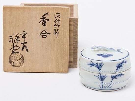 【送料無料】手塚祥堂 作 染付竹節香合 teduka-01/お茶のふじい・藤井茶舗