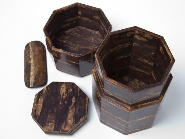 【送料無料】桜皮細工 御茶筒揃 総桜皮八角茶筒揃